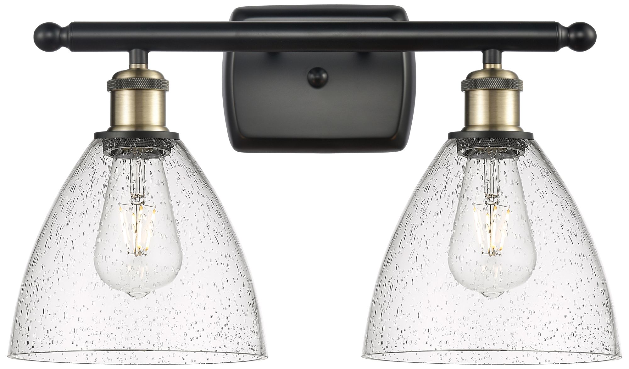Bristol Glass 2 Light 18" LED Bath Light - Black Brass - Seedy Shade