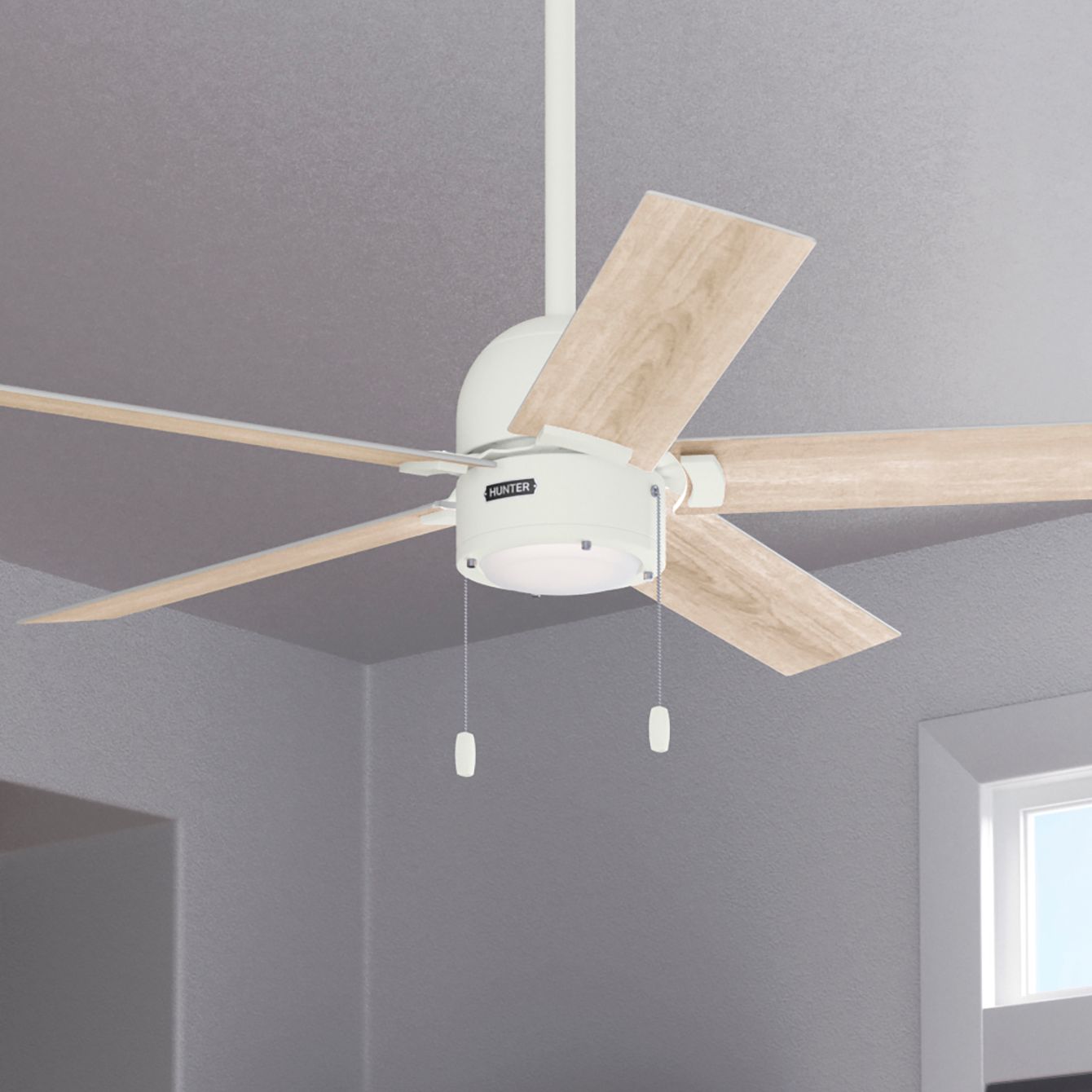 52" Hunter Erling Matte White Ceiling Fan with LED Light Kit