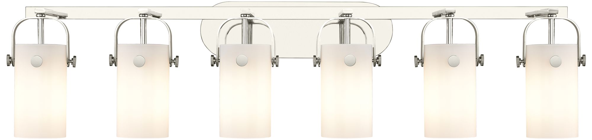 Pilaster II Cylinder 44"W 6 Light Polished Nickel Bath Light w/ White