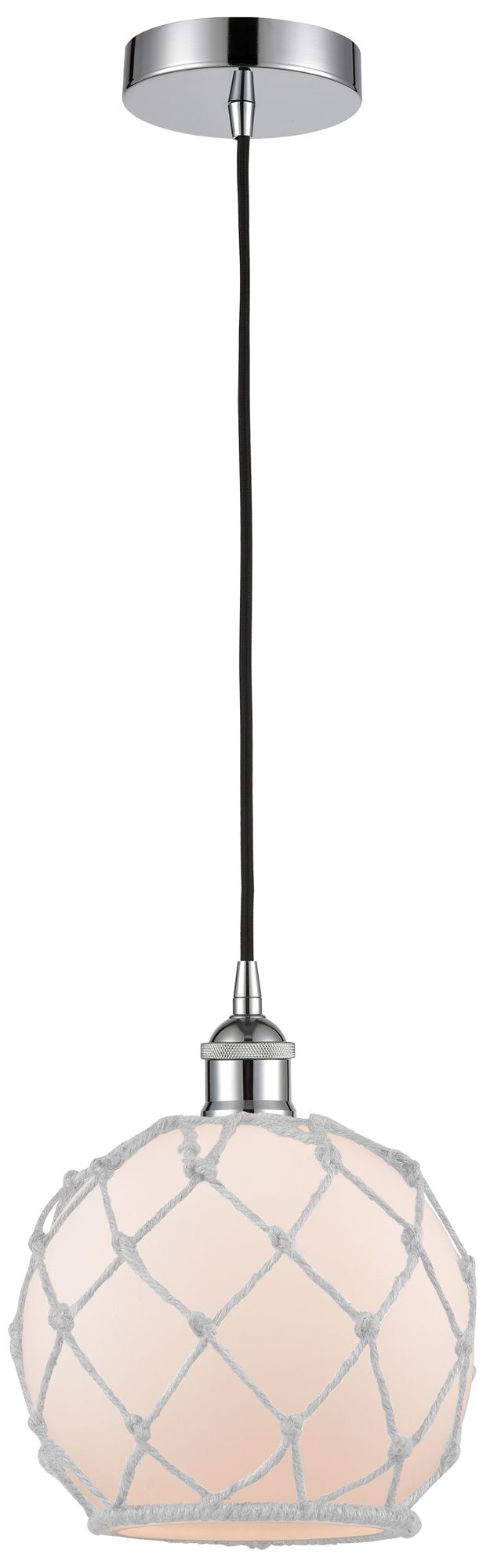 Edison Farmhouse 8" Chrome Corded Mini Pendant w/ White Rope Shade