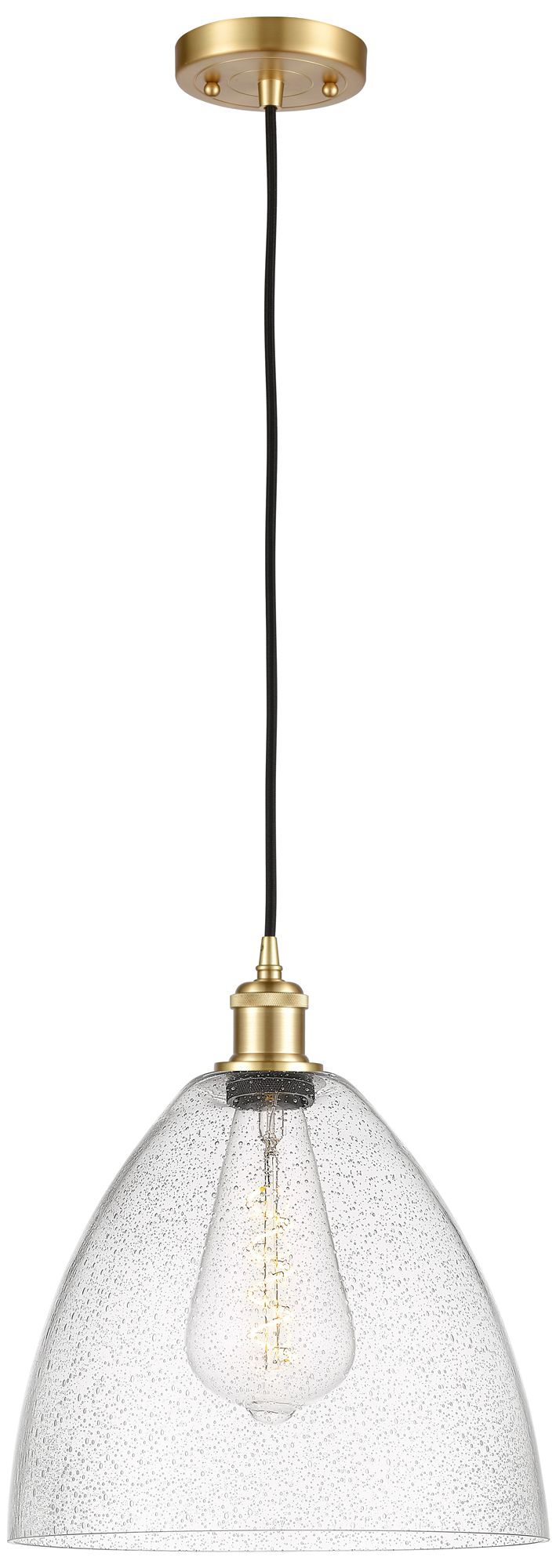 Ballston Bristol Glass 12" LED Mini Pendant - Satin Gold - Seedy Shade