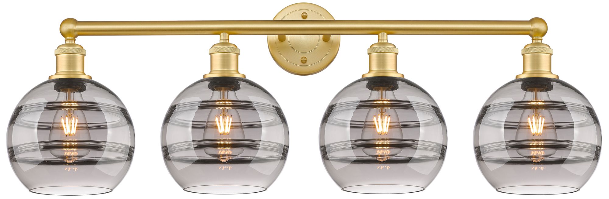 Edison Vaz 35"W 4-Light Matte Black Bath Vanity Light w/ Blue Shade