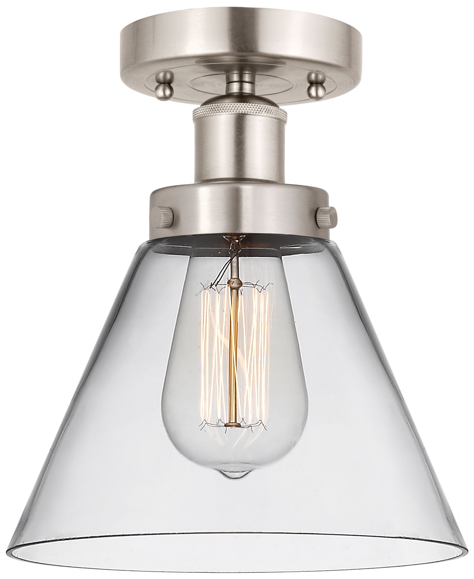 Edison Large Cone 7" Brushed Satin Nickel Semi Flush Mount w/ Clear Sh
