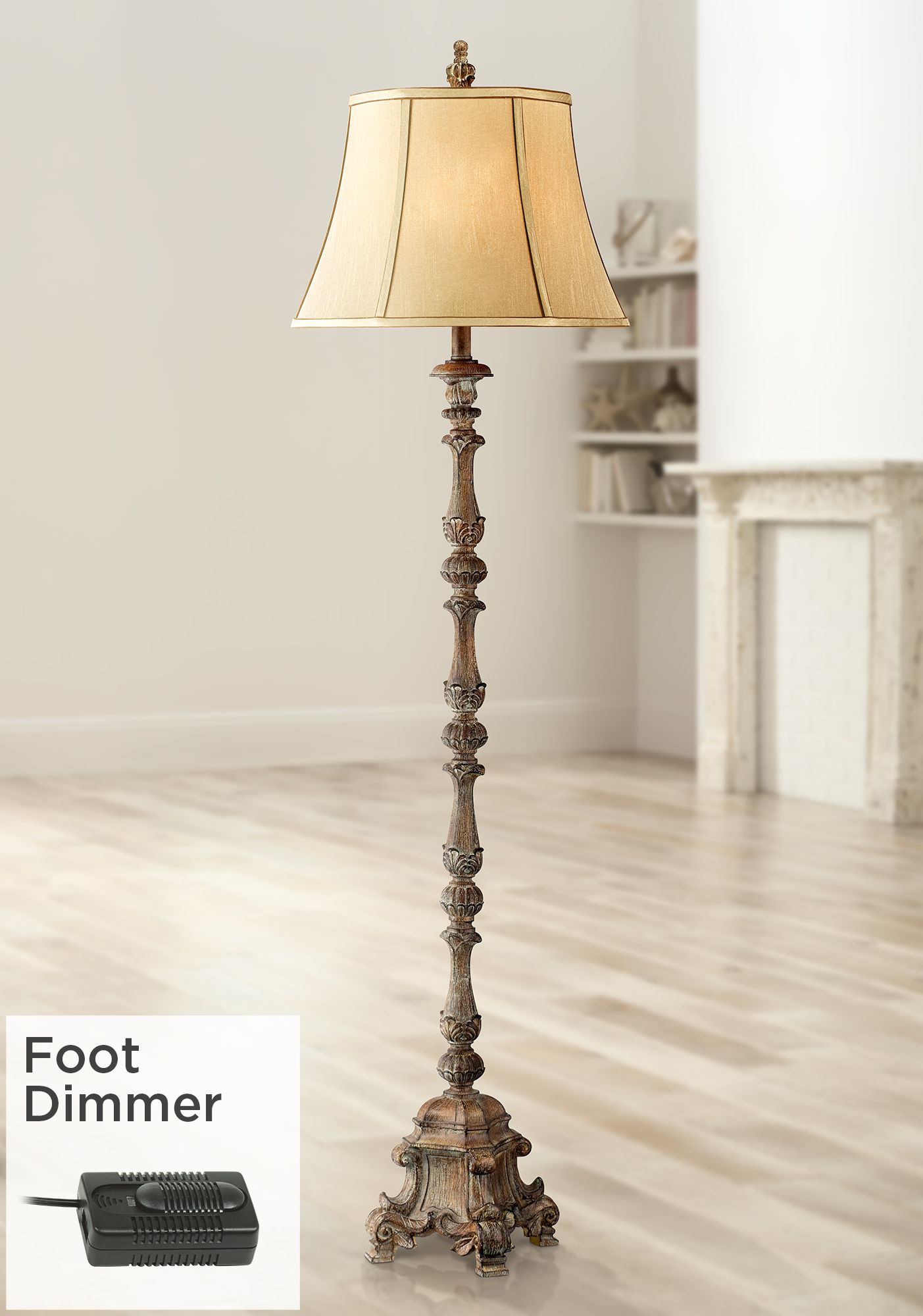 Campazza Distressed Faux Wood Floor Lamp with Foot Dimmer