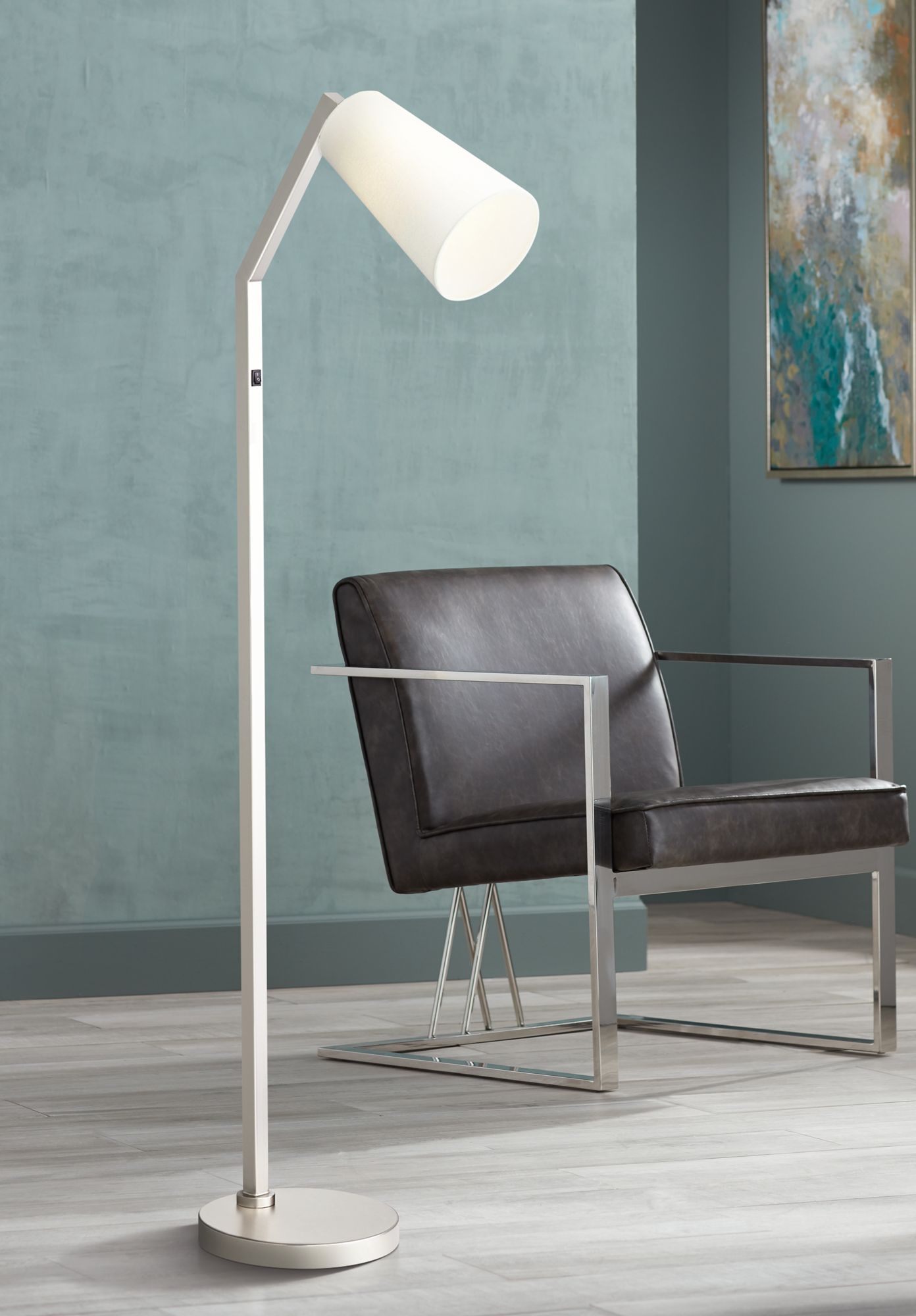 Possini Euro 57" HIgh Satin Nickel and White Modern Floor Lamp