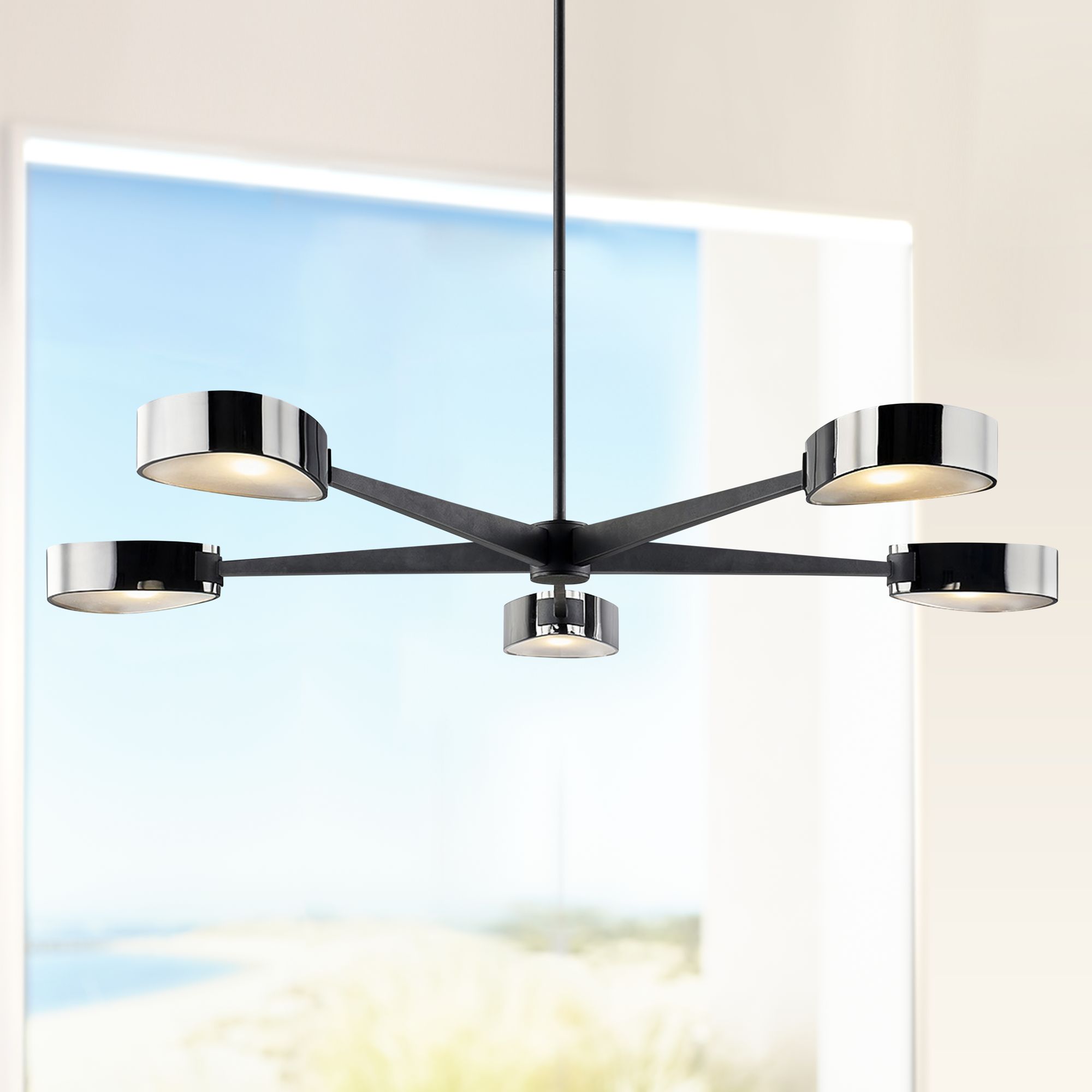Allisio 49" Wide Black and Chrome 5-Light Pendant Light