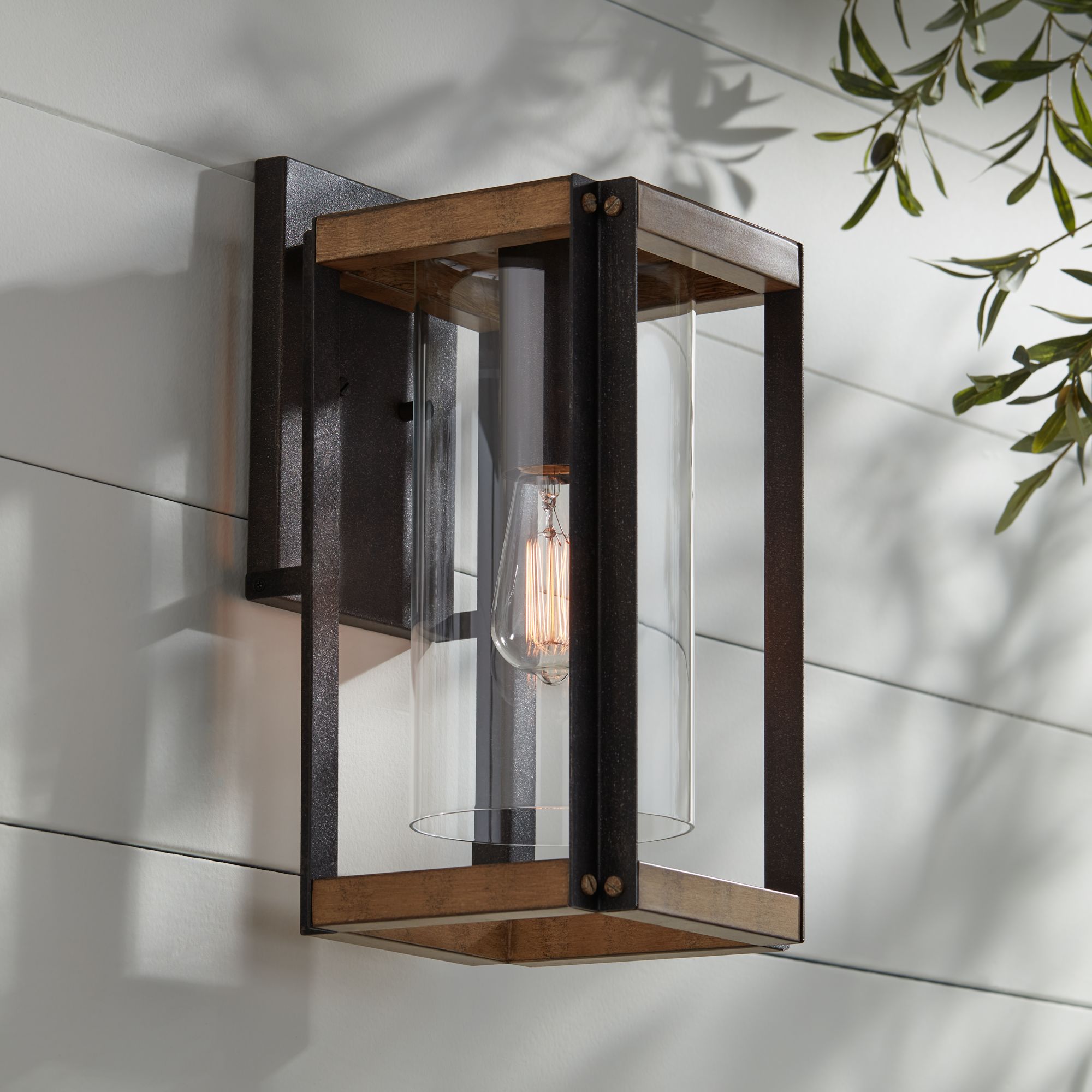 Marion Square 16 1/2"H Black and Walnut Outdoor Wall Light