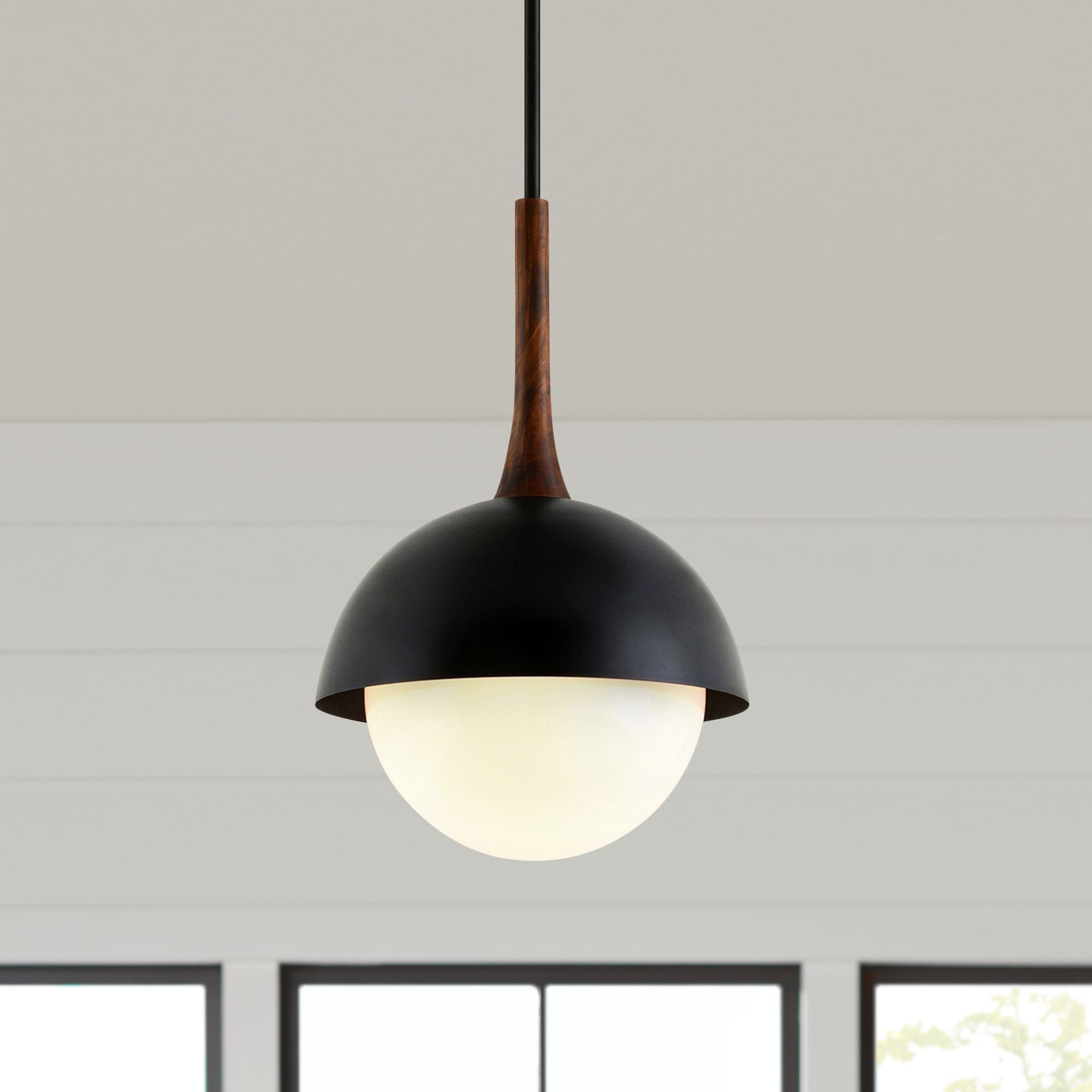Cadet 15" Wide Black and Natural Acacia Wood Pendant Light