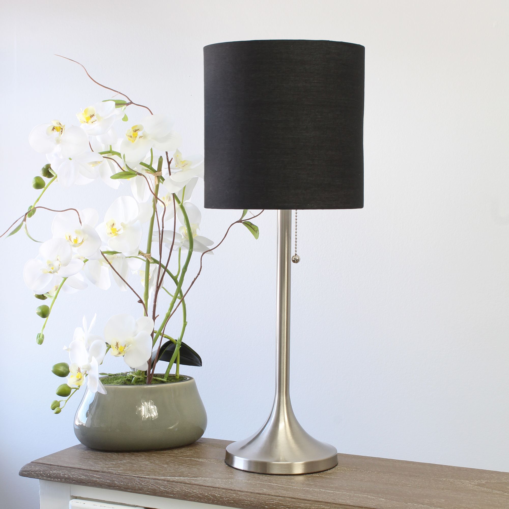 Simple Designs 21" High Nickel Accent Table Lamp with Black Shade