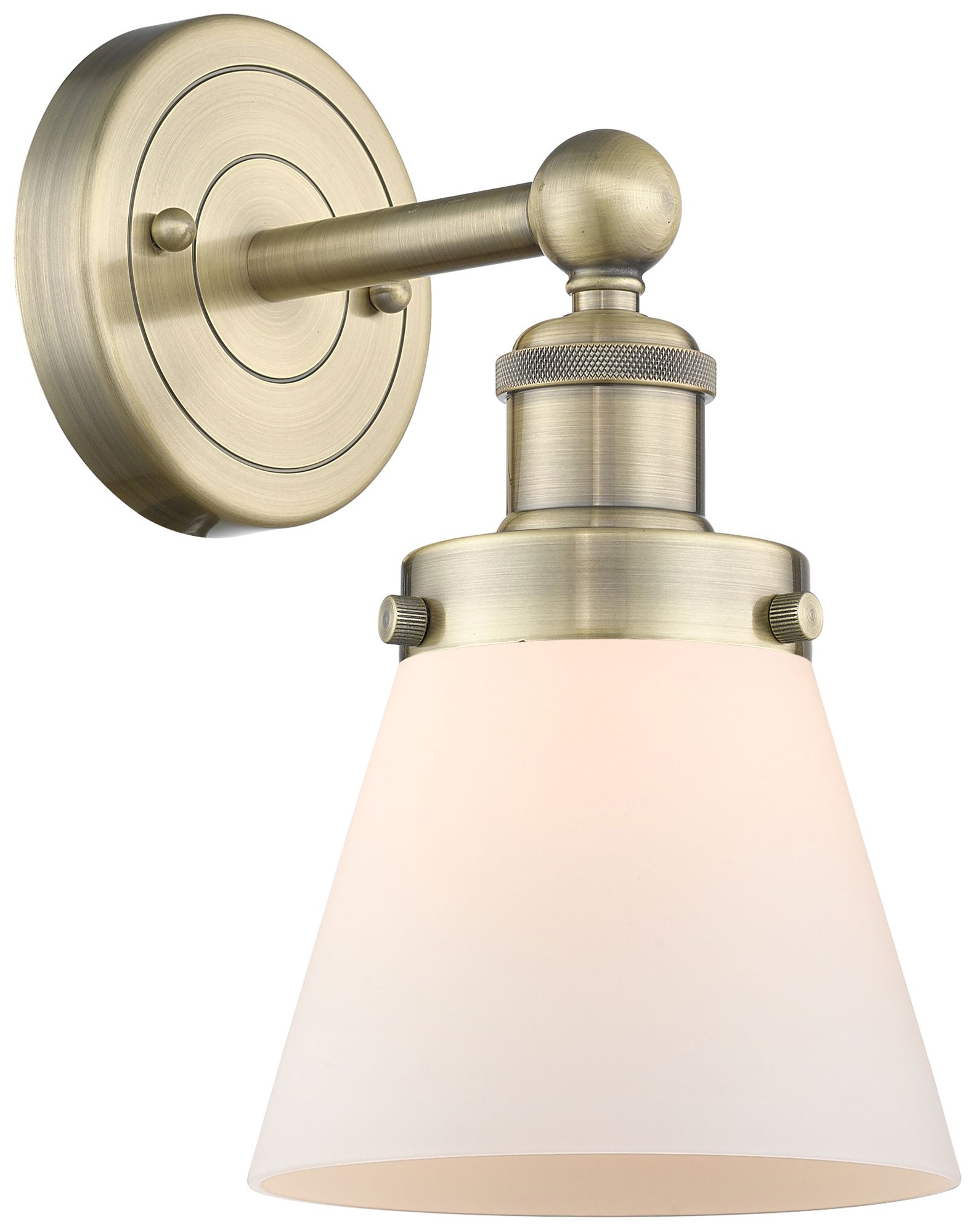 Small Cone 10"High Antique Brass Sconce With Matte White Shade