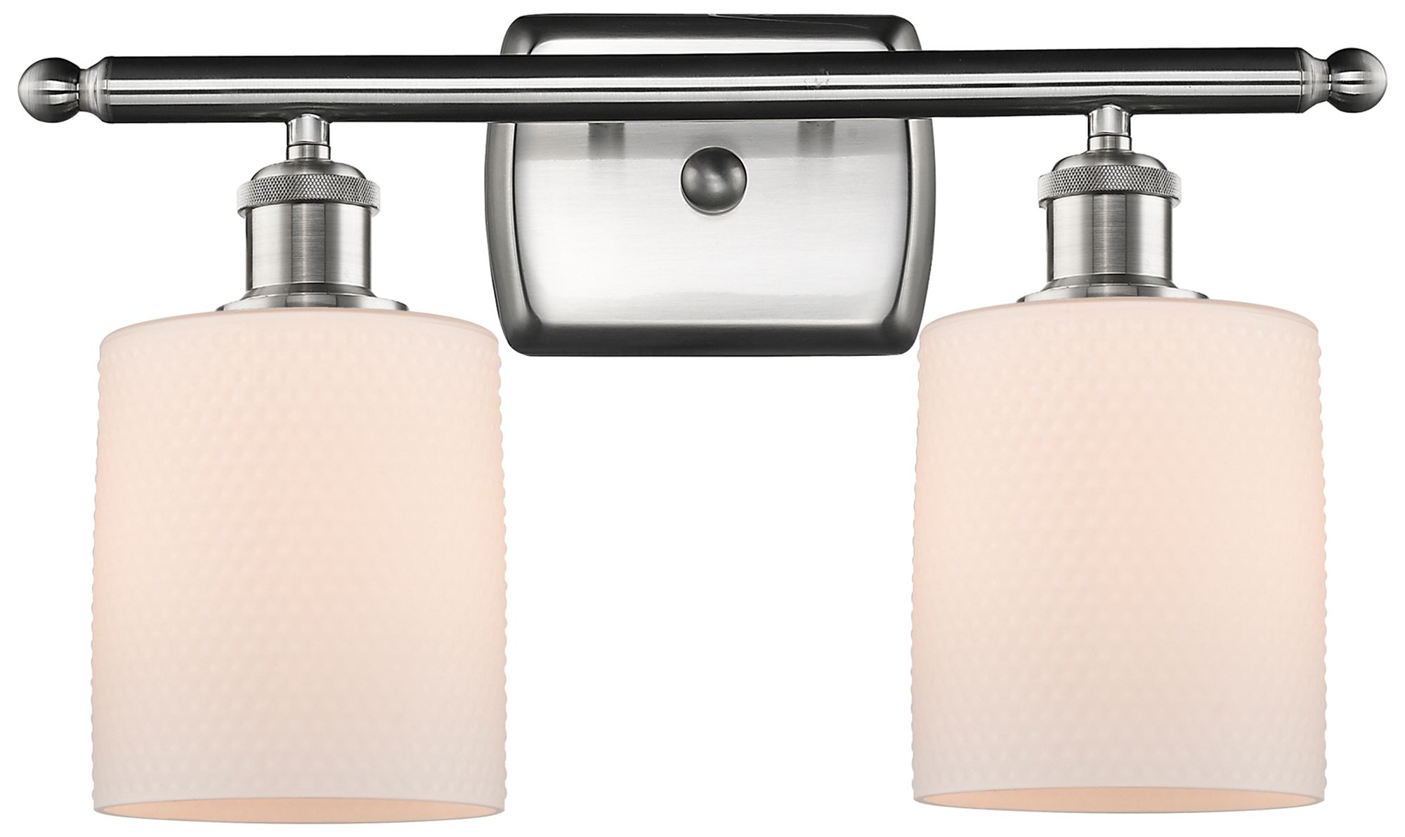 Ballston Cobbleskill 16" 2-Light Brushed Nickel Bath Light w/ White Sh