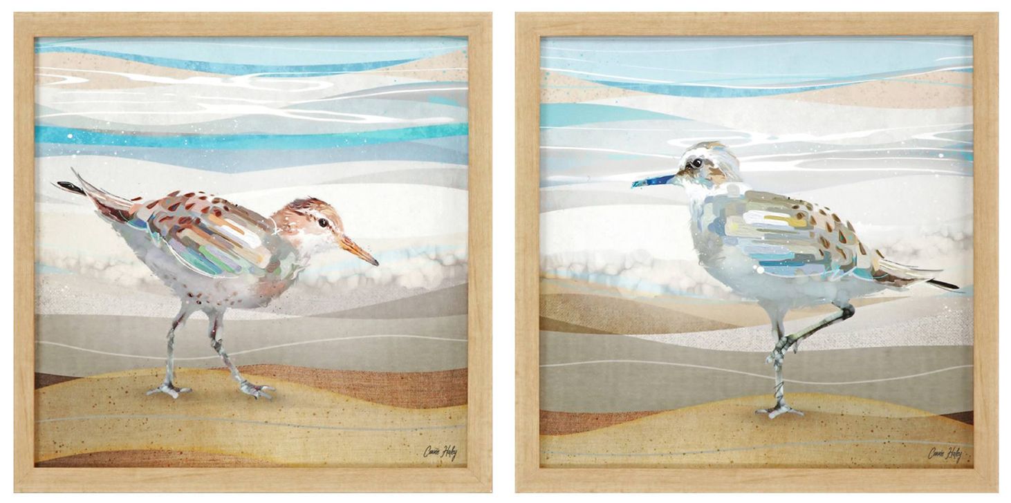 Serene Sandpiper 18"W x 18"H Non-Glass Framed Art Set of 2