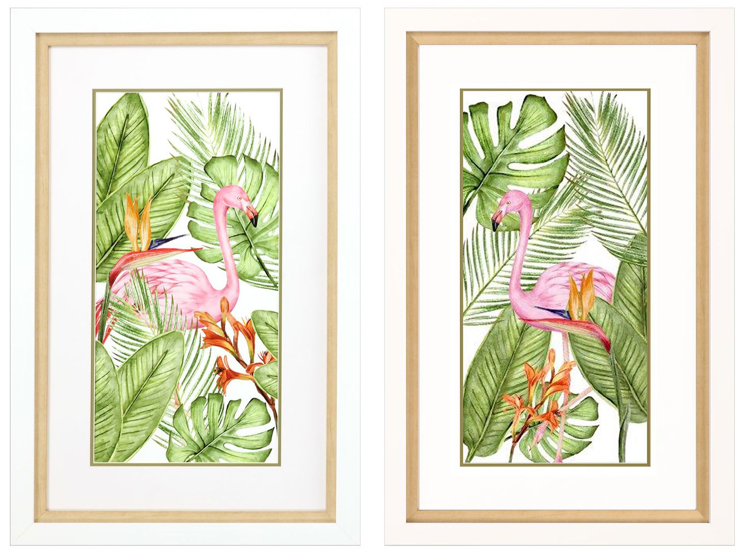 Tropical Flamingo 22"W x 34"H Framed Art Set of 2