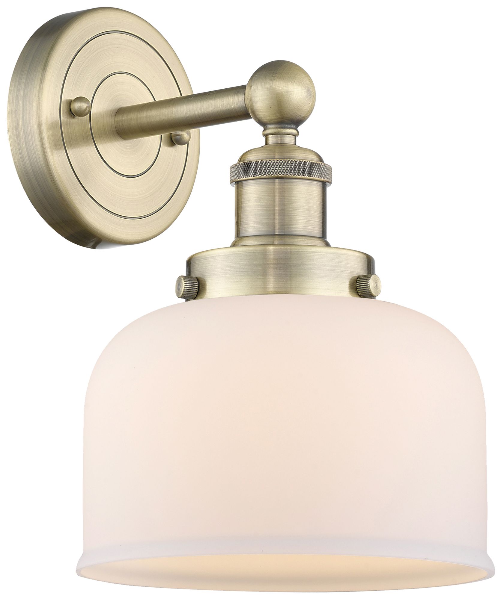 Large Bell 10"High Antique Brass Sconce With Matte White Shade