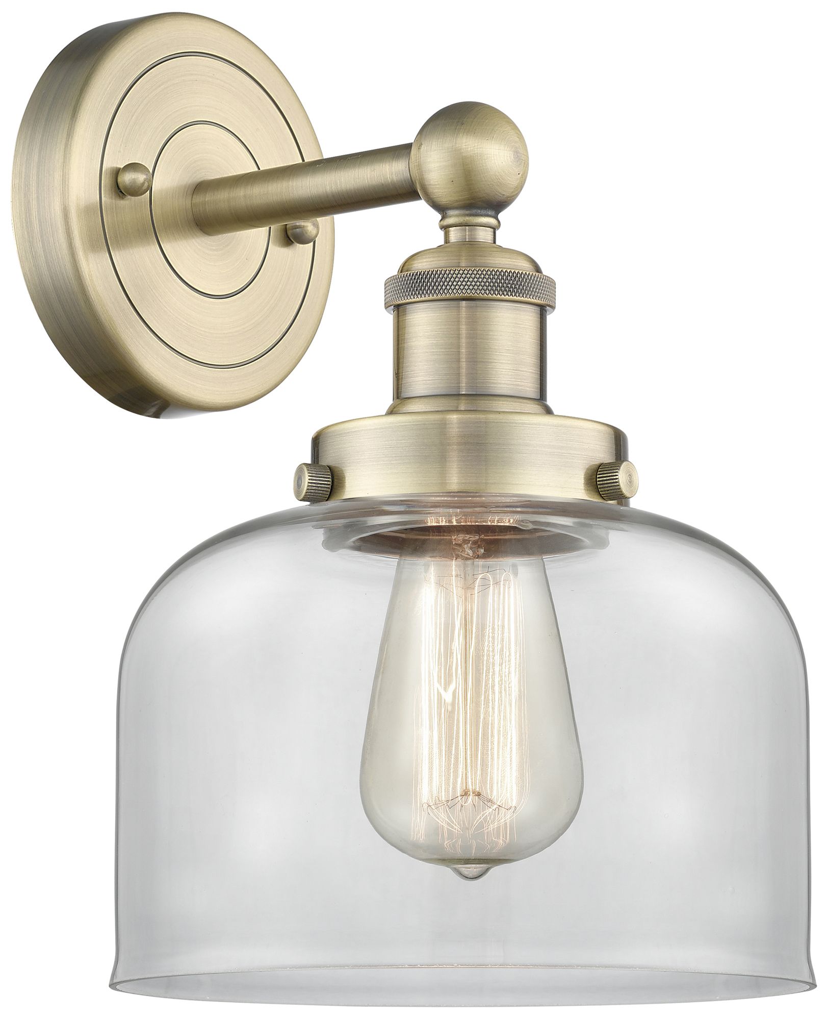 Large Bell 10"High Antique Brass Sconce With Clear Shade