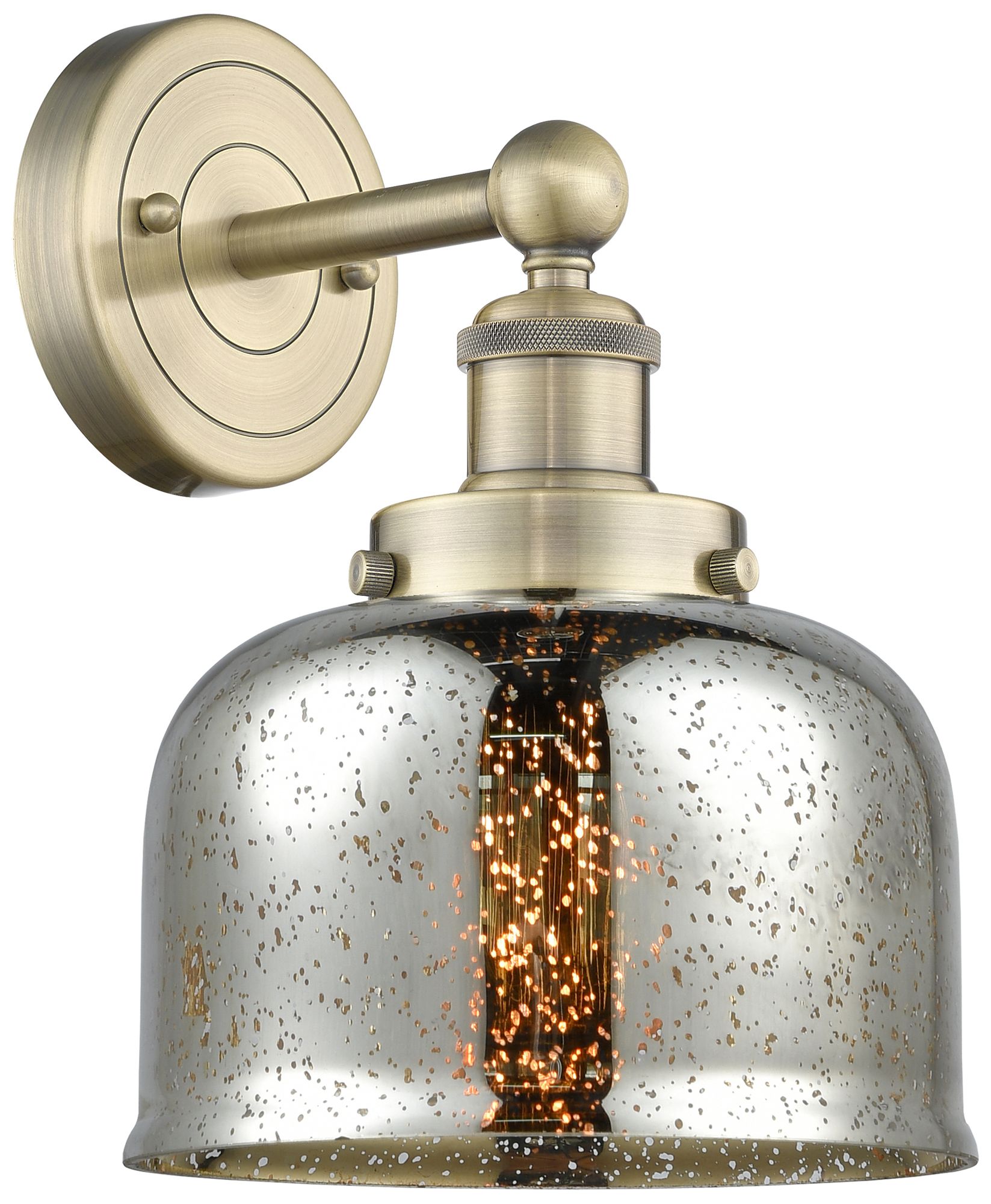 Large Bell 10"High Antique Brass Sconce With Mercury Shade