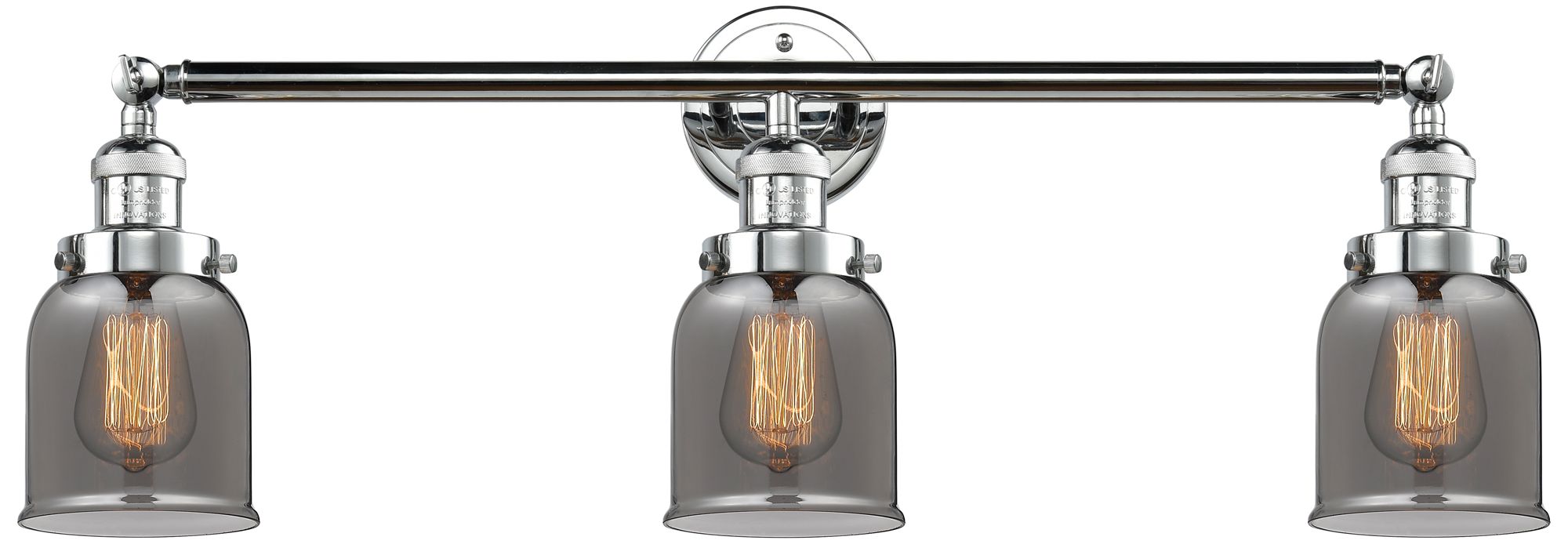 Bell 3 Light 30" LED Bath Light - Polished Chrome - Plated Smoke Shade