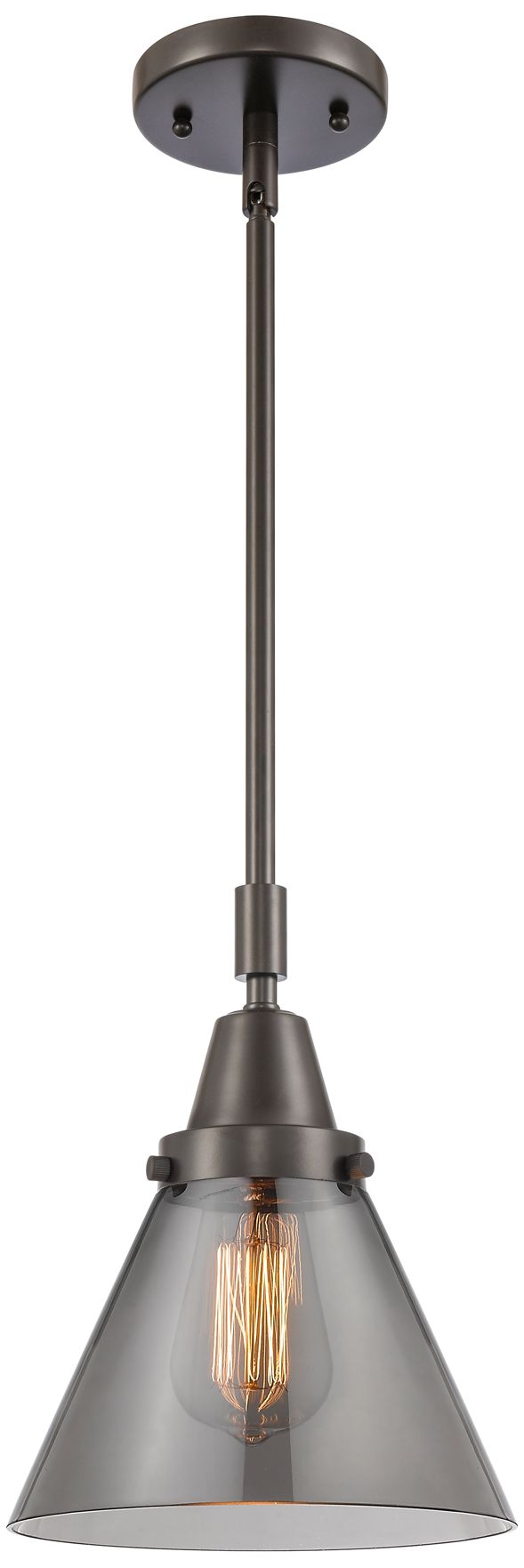 Caden Cone 8" Wide Bronze Stem Hung Mini Pendant w/ Plated Smoke Shade