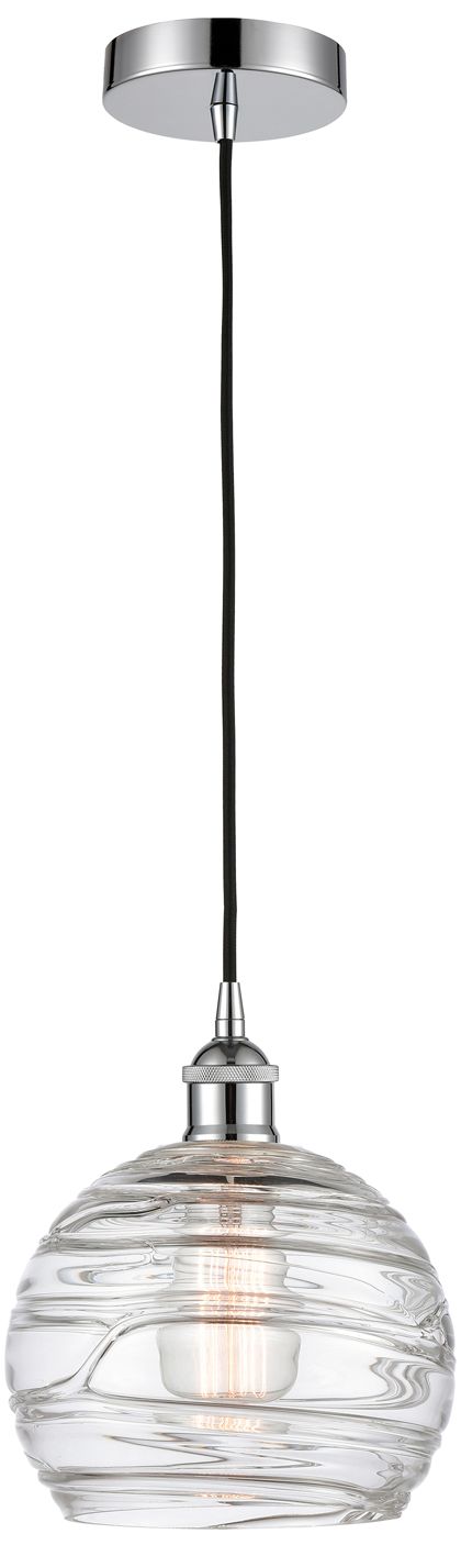 Athens 8" Polished Chrome Mini Pendant w/ Clear Deco Swirl Shade