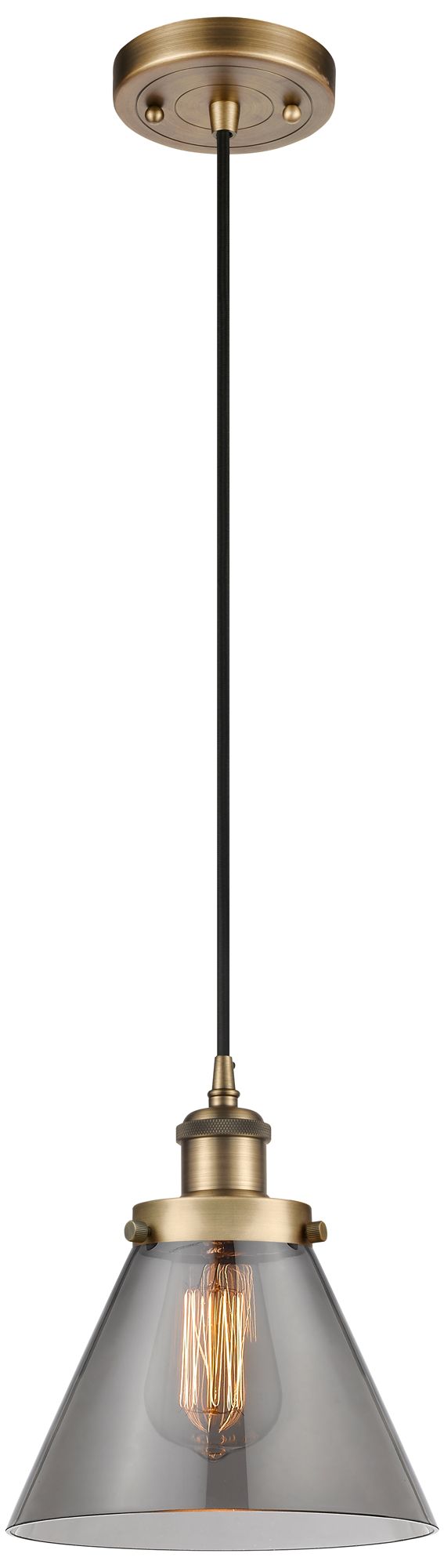 Ballston Urban Cone 8" Brushed Brass Corded Mini Pendant w/ Smoke Shad