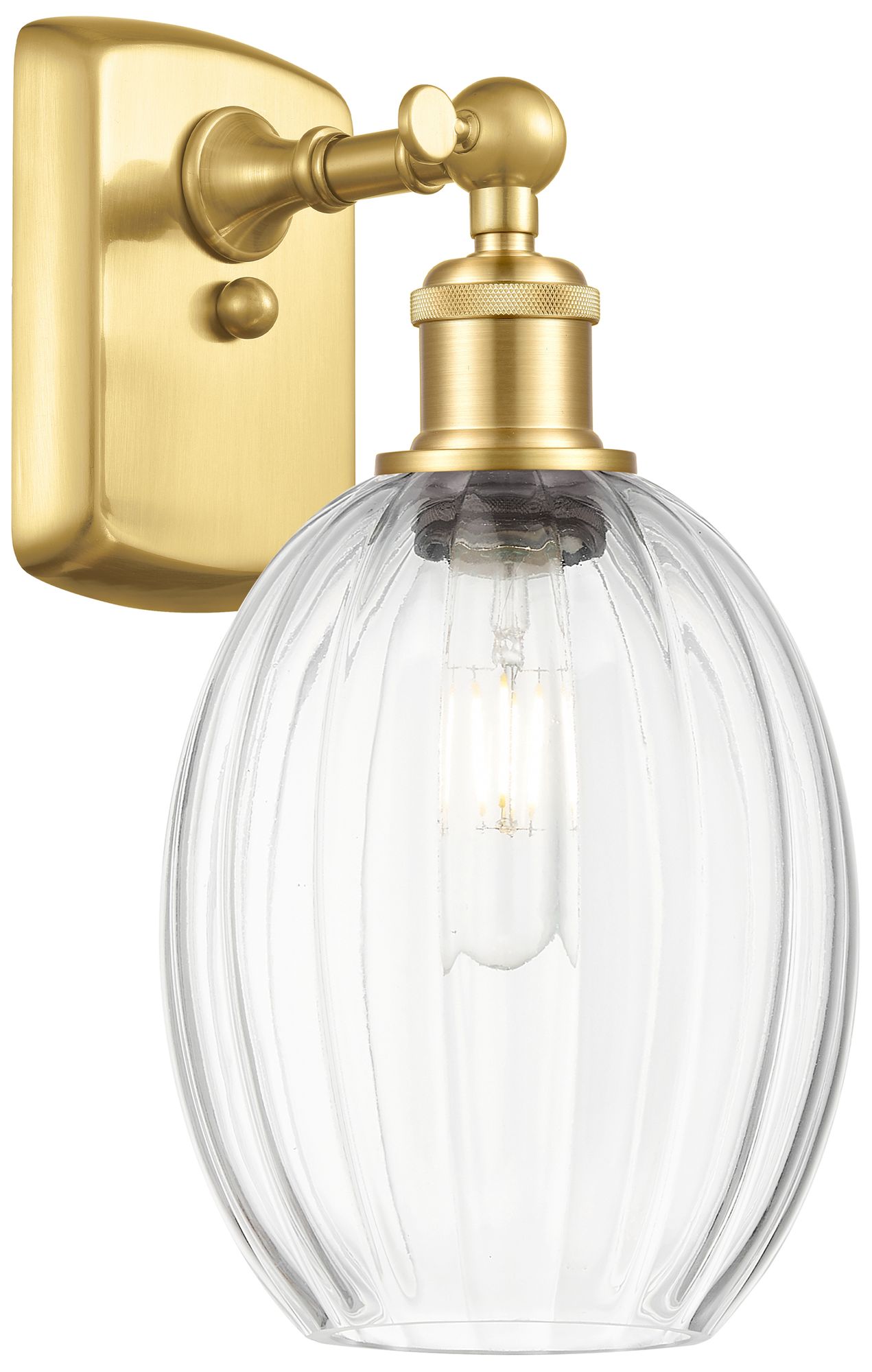 Ballston Preston 12" High Satin Gold Sconce With Clear Bulb Shade