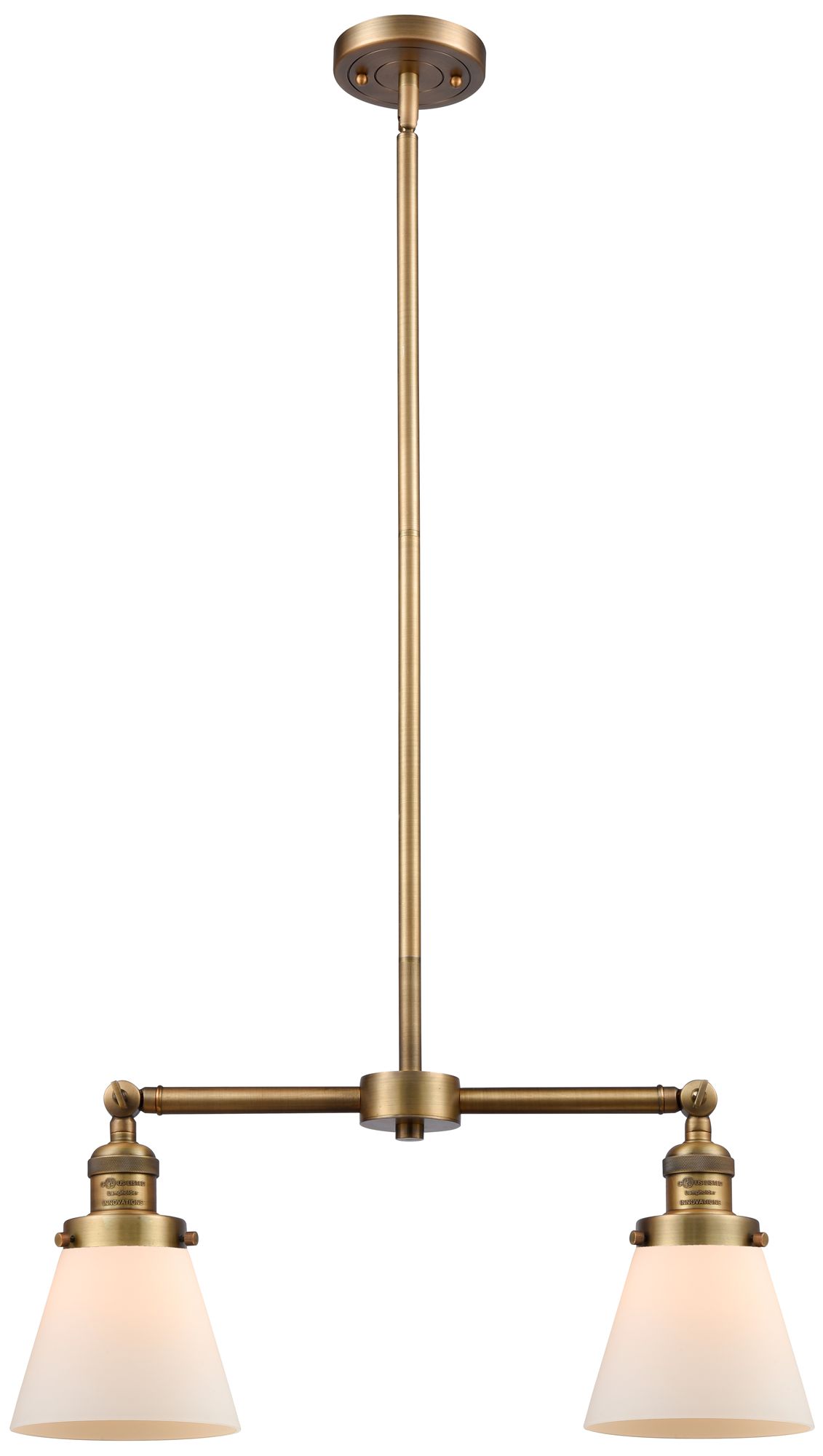 Cone 21" Wide 2 Light Brushed Brass Island Light w/ Matte White Shade