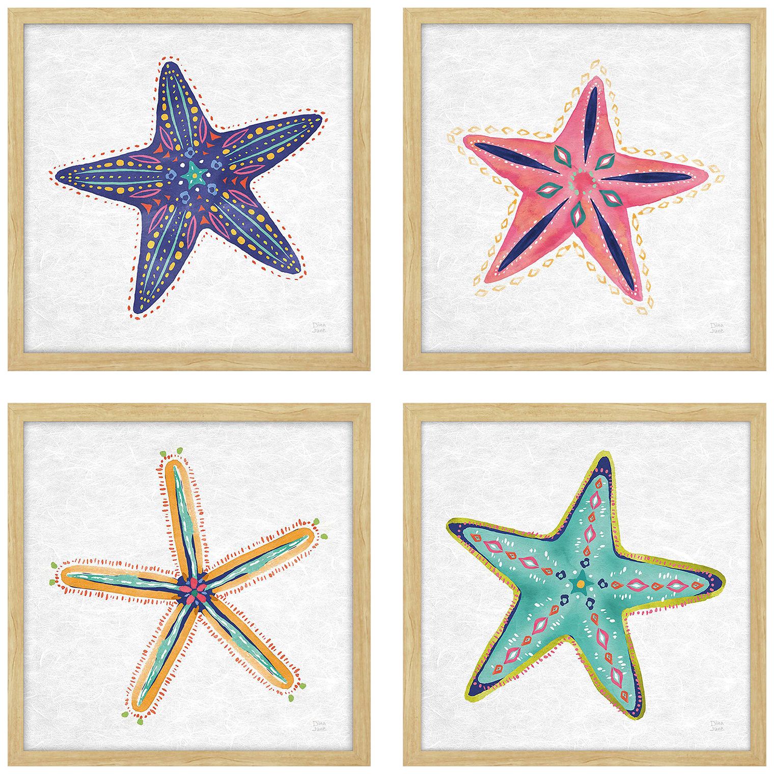 Coastal Starfish 18"W x 18"H Framed Art Set of 4