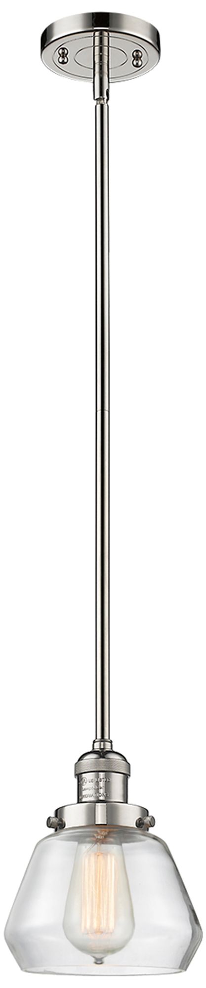Franklin Fulton 7"W Polished Nickel Stem Hung Mini Pendant w/ Clear Sh