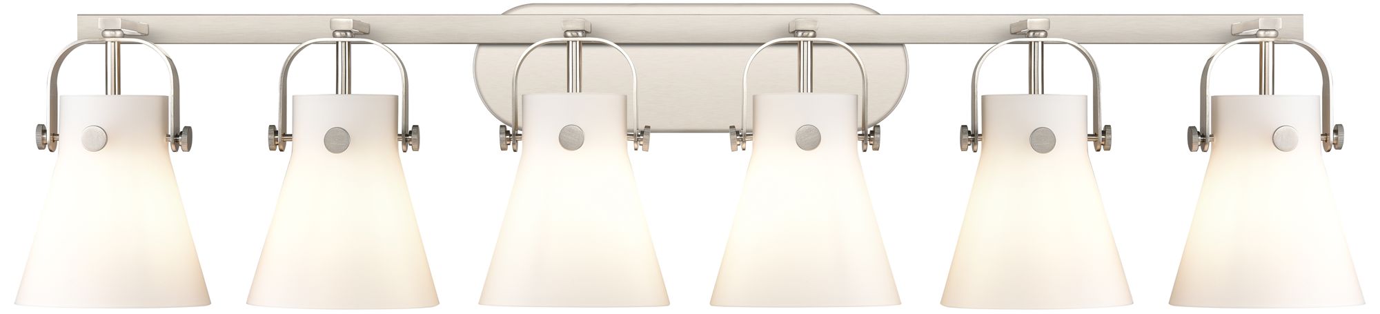 Pilaster II Cone 45.5" Wide 6 Light Satin Nickel Bath Light w/ White S