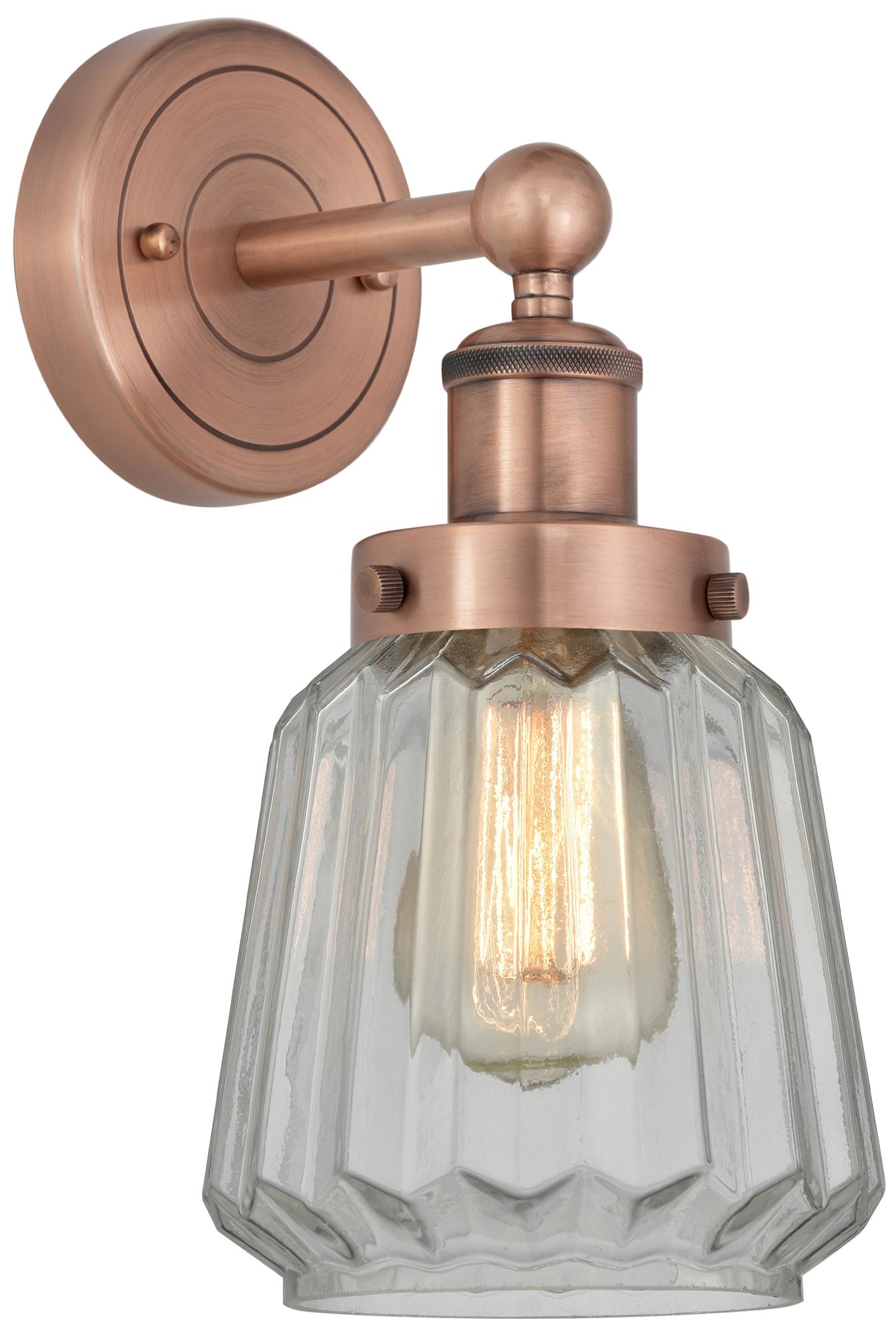 Edison Chatham 10"High Antique Copper Sconce With Matte White Shade