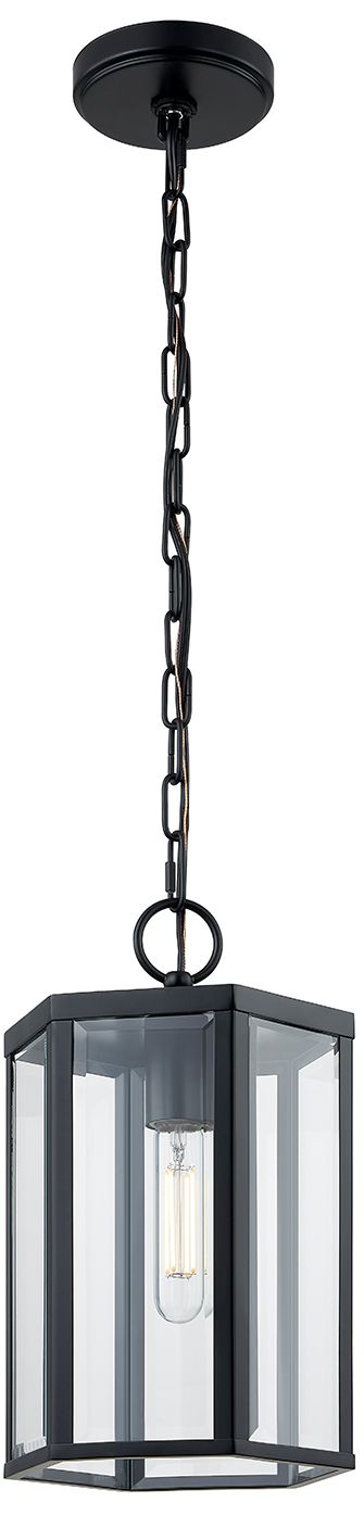 Fusion Edgeworth 8.5"W Matte Black Outdoor Pendant With Clear Glass Sh