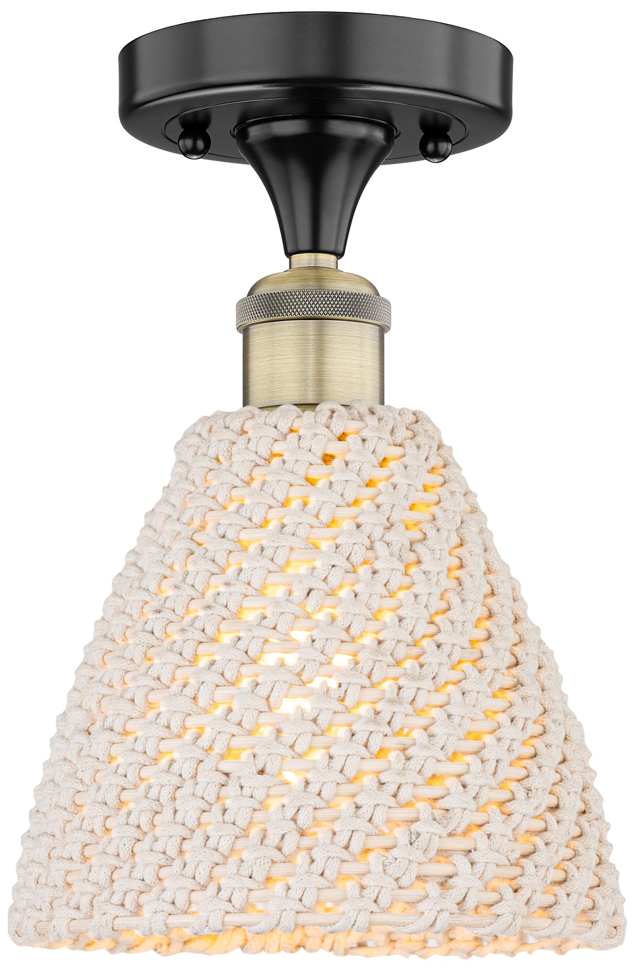 Edison Bristol Natural 8" Wide Black Antique Brass Semi.Flush Mount