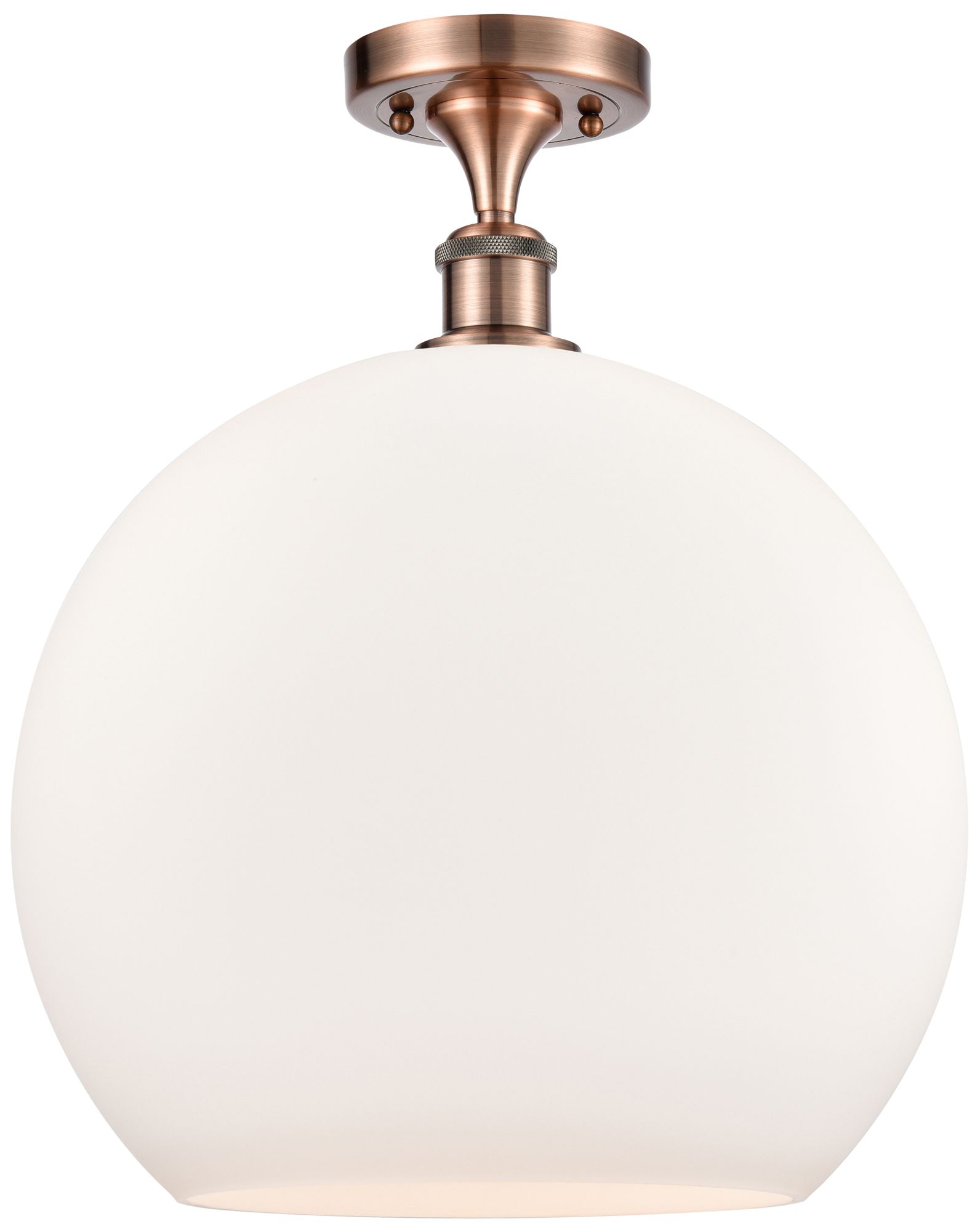 Athens 14" LED Semi-Flush Mount - Antique Copper - Matte White Shade