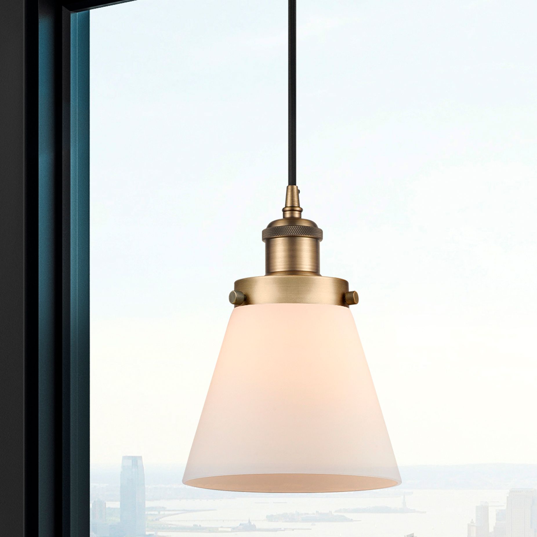 Ballston Urban Cone 6" Brushed Brass Corded Mini Pendant w/ White Shad