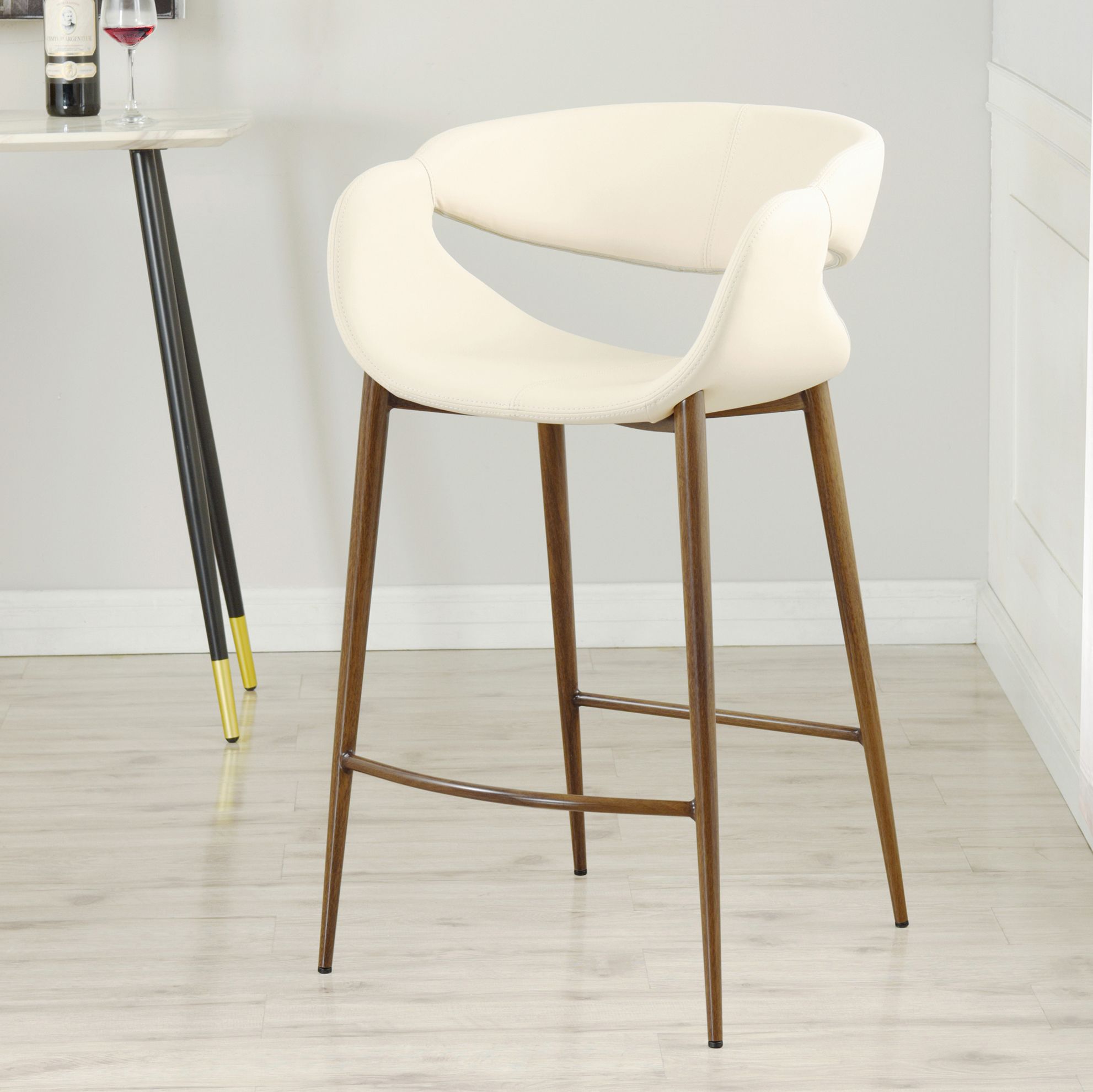 Joshua 35.4"H Cream Double Stitch Scoop Counter Stool