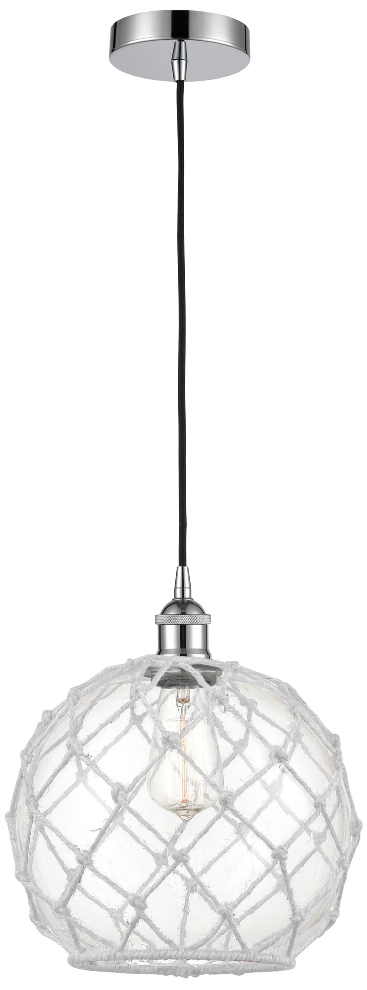 Farmhouse 10" Chrome Mini Pendant w/ Clear Glass with White Rope Shade