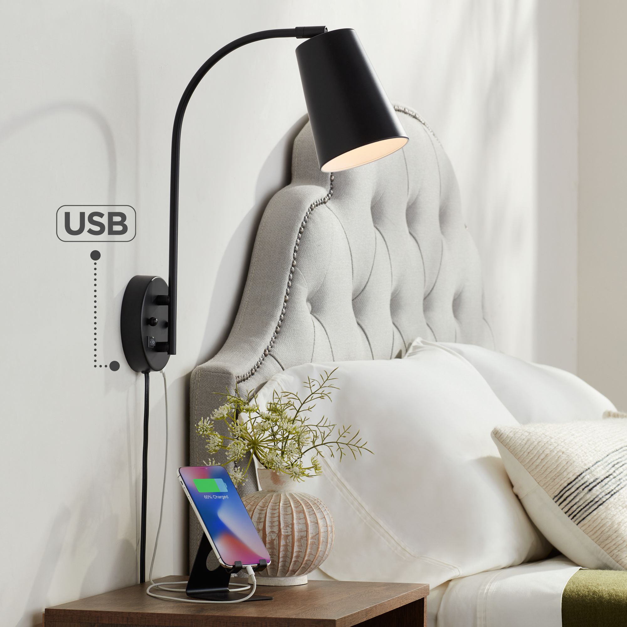360 Lighting Sully 19" Black Modern Plug-in Wall Lamp with USB Port