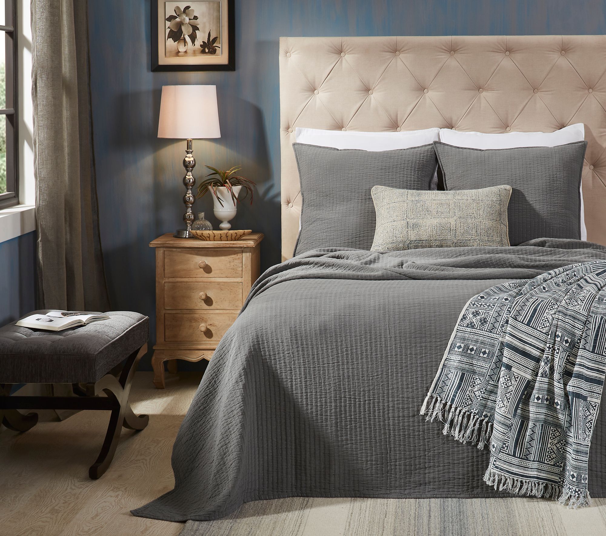 Serena Dark Gray Matelasse Fabric King Coverlet