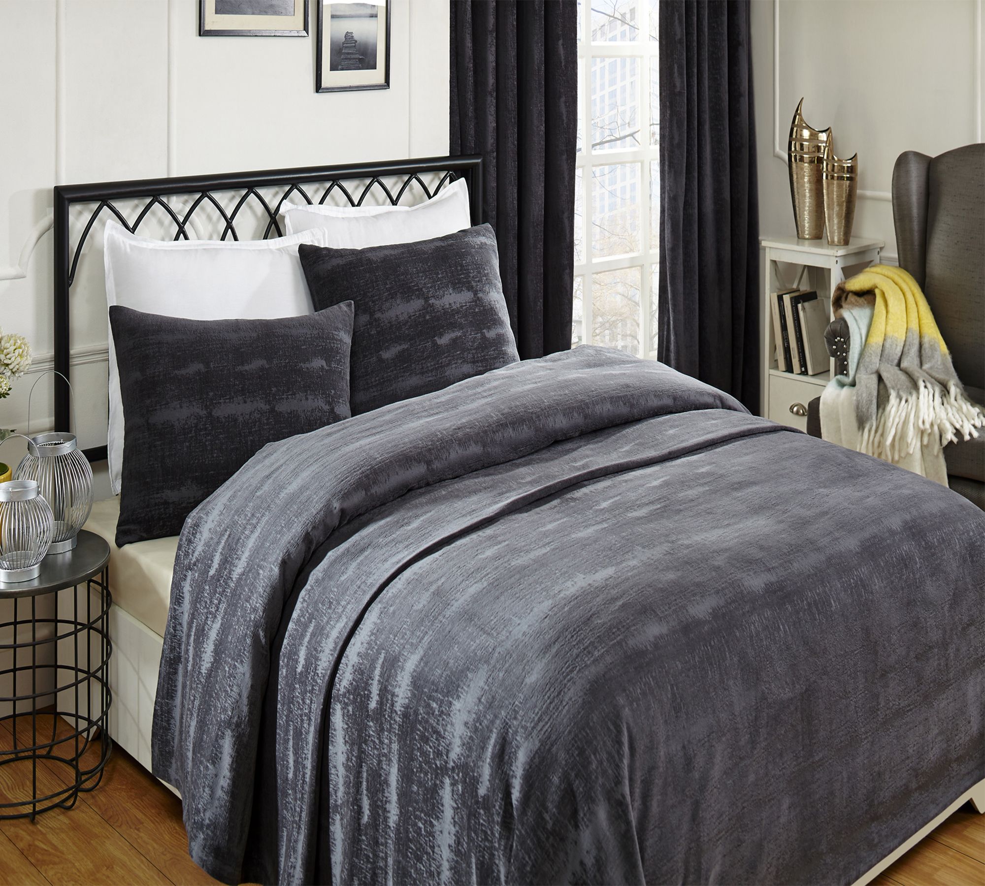 Velvet Black Distressed Fabric King Coverlet