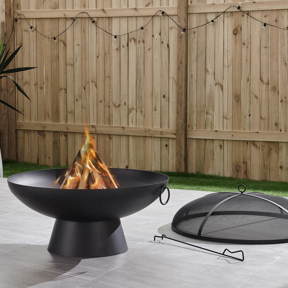 Brooks 31 1/2"W Black Round Wood Burning Outdoor Fire Pit