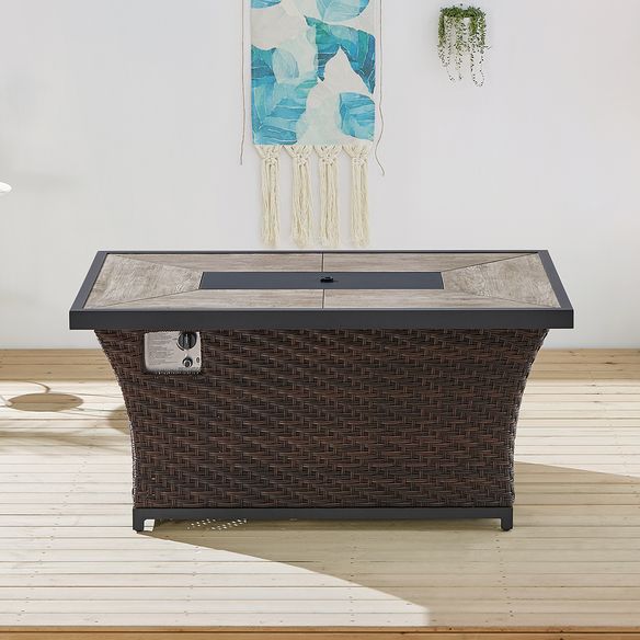 Benton II 51 1/2" Wide Brown Wicker Outdoor Fire Pit Table