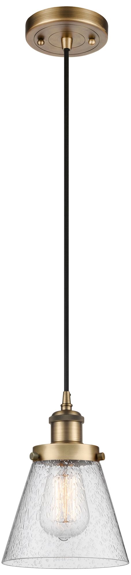 Ballston Urban Cone 6" Brushed Brass Corded Mini Pendant w/ Seedy Shad