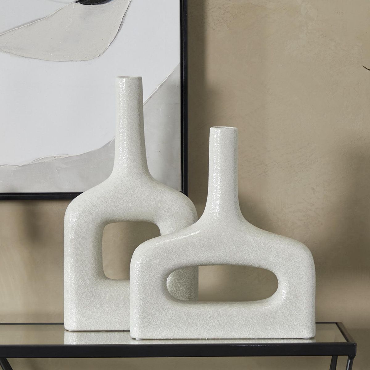 White Ceramic Modern Vase, S/2 16", 13"H