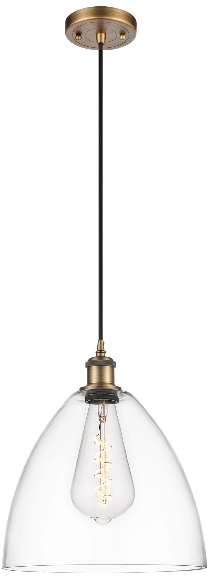 Ballston Bristol Glass 12" Mini Pendant - Brushed Brass - Clear Shade