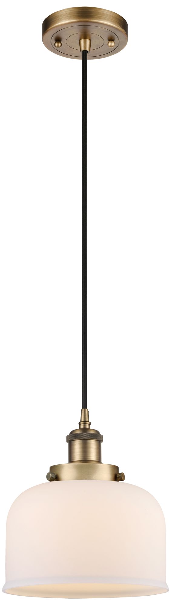 Ballston Urban Bell 8" Brushed Brass Corded Mini Pendant w/ White Shad