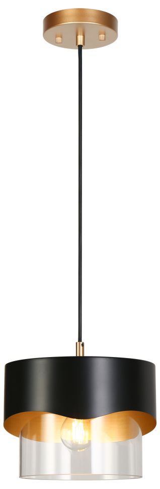 Yates 10" Wide Black and Gold Mini Pendant with Clear Glass
