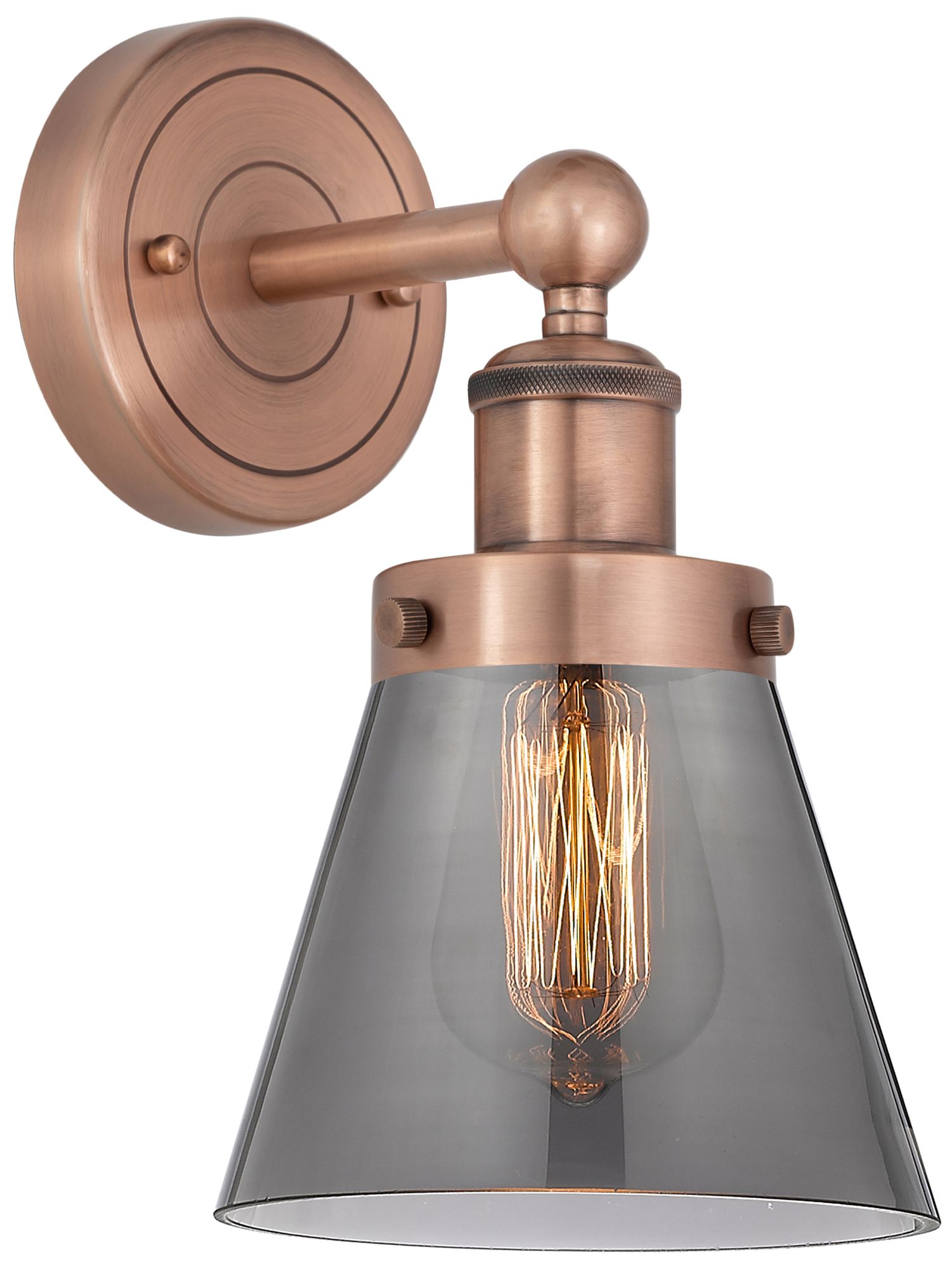 Small Cone 10"High Antique Copper Sconce With Plated Smoke Shade
