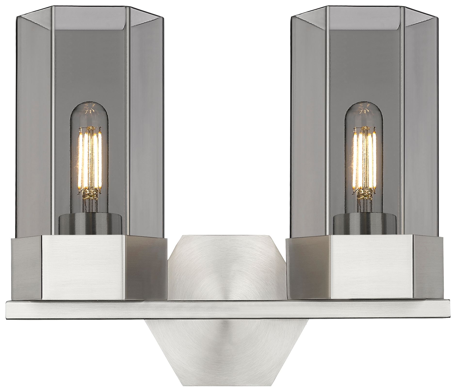 Claverack 13.63"W 2 Light Satin Nickel Bath Light With Plated Smoke Sh
