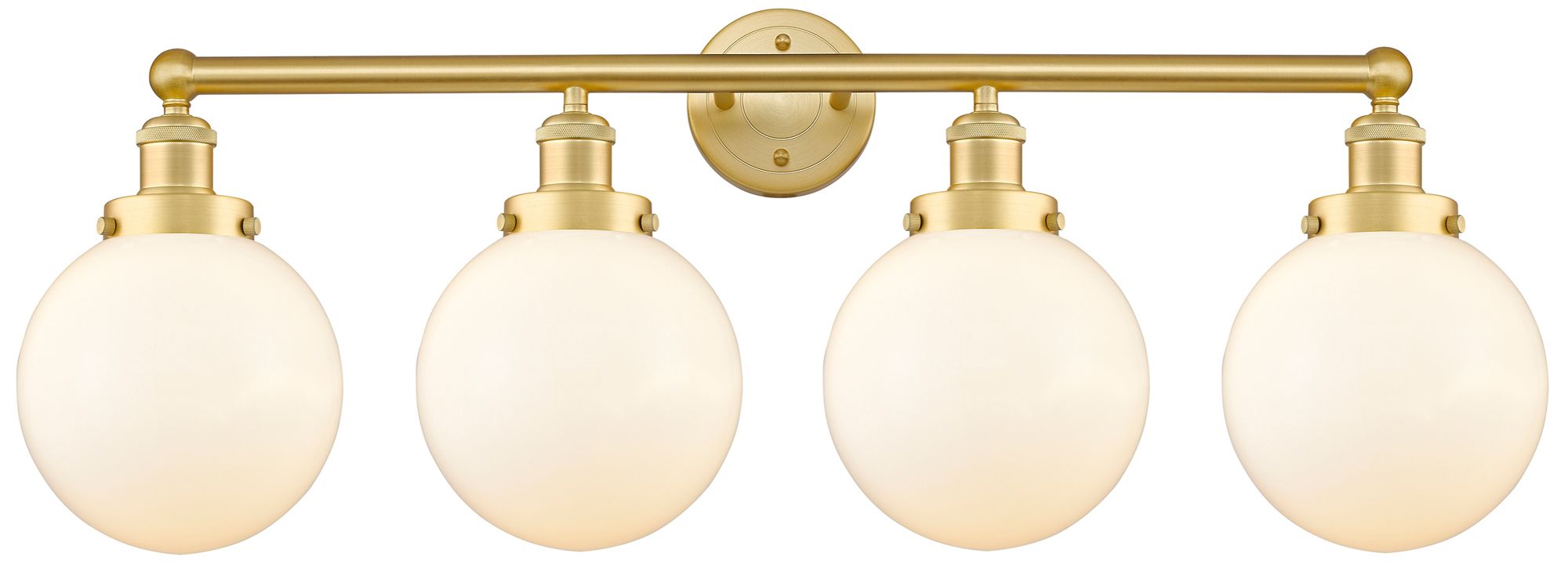 Large Beacon 33.5"W 4 Light Satin Gold Bath Light w/ Matte White Shade