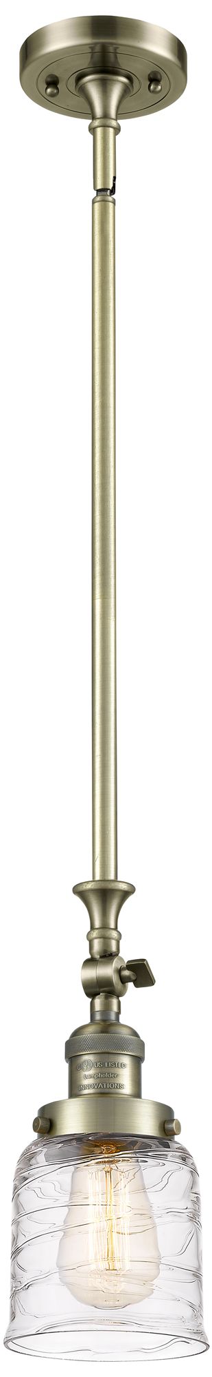 Bell 5" Antique Brass Stem Hung Mini Pendant w/ Deco Swirl Shade